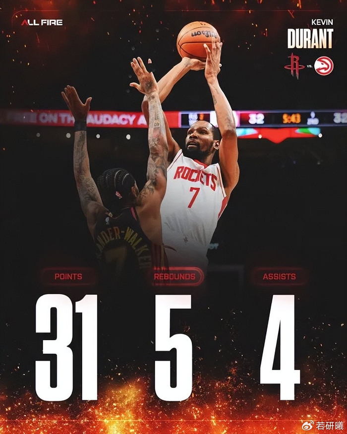 当然,对上更高大的锋线时,他身高吃亏,力量对抗稍显不足。本来奥科吉是为复仇勇士准备的,但勇士现在这处境,火箭季后赛未必会再次遭遇他们。当然,好消息是火箭状态在提升,这场对阵老鹰的胜利虽看似轻松,却充分体现了火箭在逆境中的韧性。杜兰特砍下31分主导比赛,卡佩拉和奥科吉的内线外线双保险及时补位,让球队在上半场胶着后第三节突然发力,一举拉开比分。火箭本赛季的成功离不开这种“谁来都行”的深度和韧劲,尤其在核心伤停的情况下,角色球员的站出来至关重要。